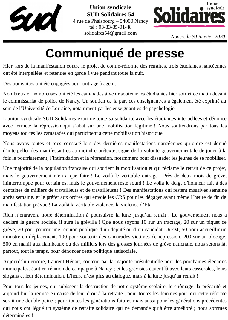 - 8h15 - Rassemblement anti-répression (suite affaire Kéolis et 13 avril) - Cité judiciaire – Nancy