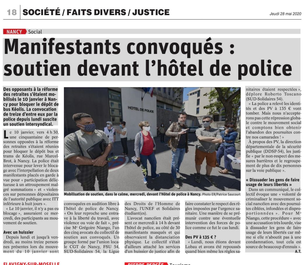 - A Nancy, les manifestants convoqués par la police bénéficient d'un fort mouvement de soutien , photos, Est Rep, 27 mai
